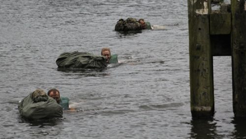 Militaire oefening op het gesimuleerd onder lading brengen van de Schoorbrug
