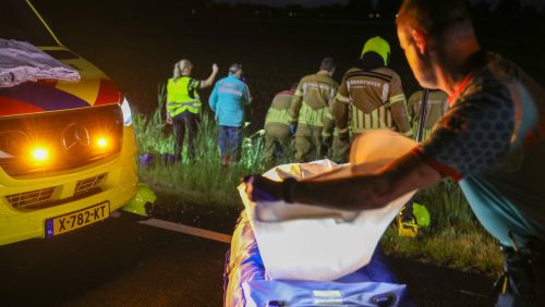 Auto slaat over de kop bij Niesakkerbrug in Ospel na botsing met motor