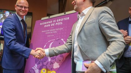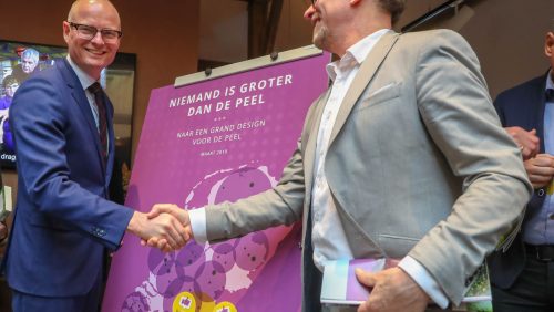 Gedeputeerden Mackus en van den Hout ontvangen bidboek Peelregio (Foto’s)