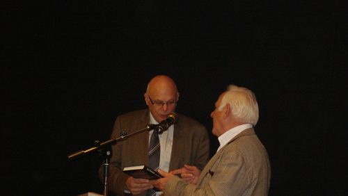 Jan Simons reikt eerste boek uit aan burgemeester Evers