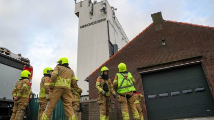 Gevelplaat los aan oud ‘mengvoerders’ gebouw