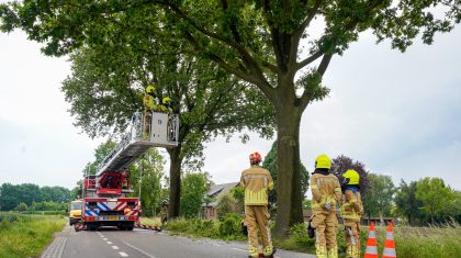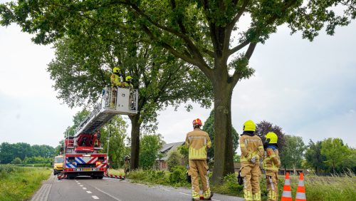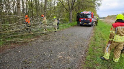 Omgewaaide boom Wessemerdijk, brandweer in actie