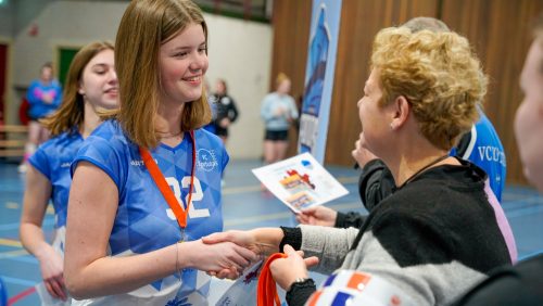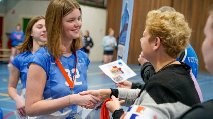 Myrthe Schoot geeft Volleybalclinic bij V.C. Fortutas Nederweert